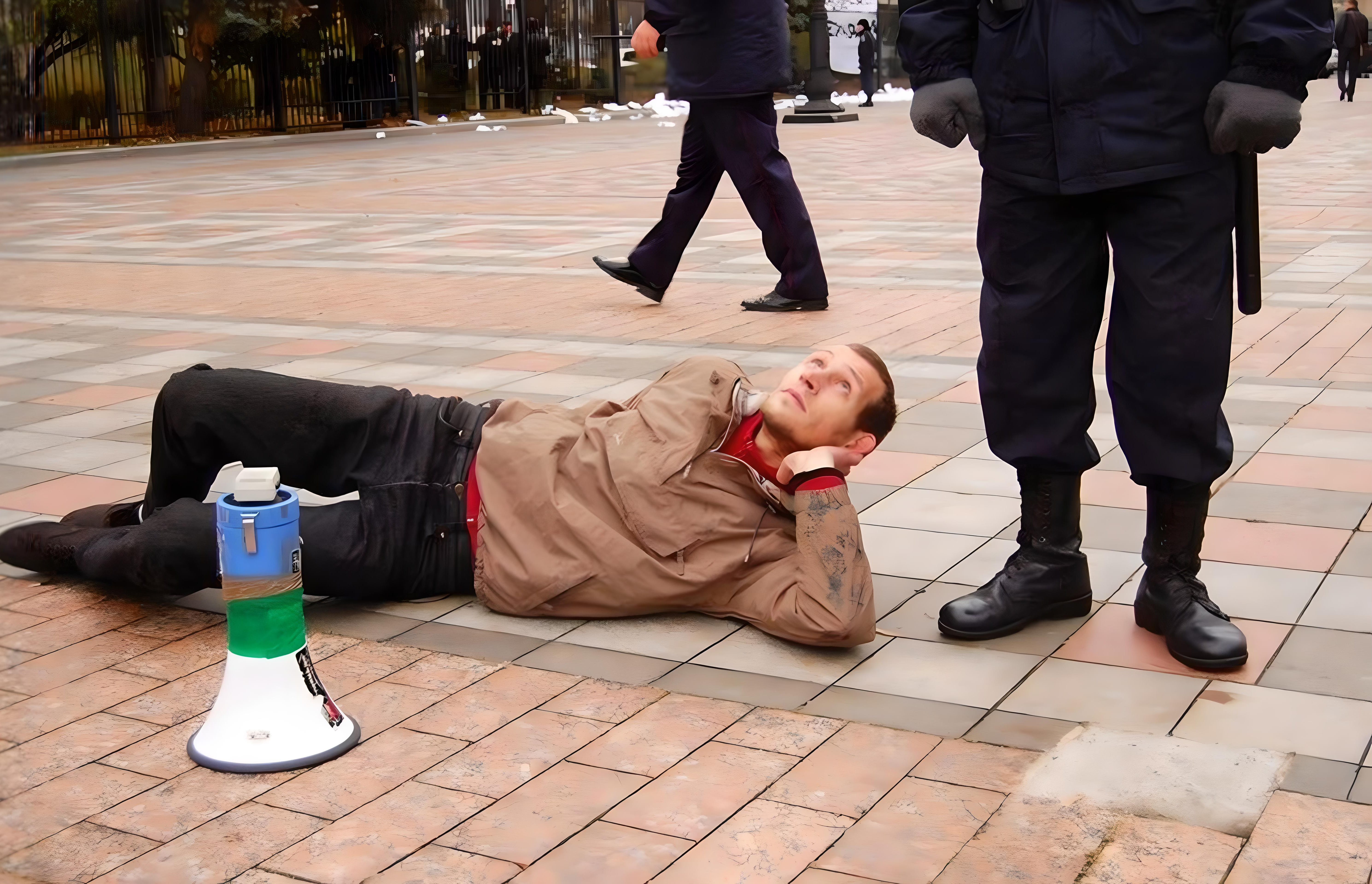 Davyd Chichkan at the protest in front of the Verkhovna Rada, the Ukrainian parliament. 2017.