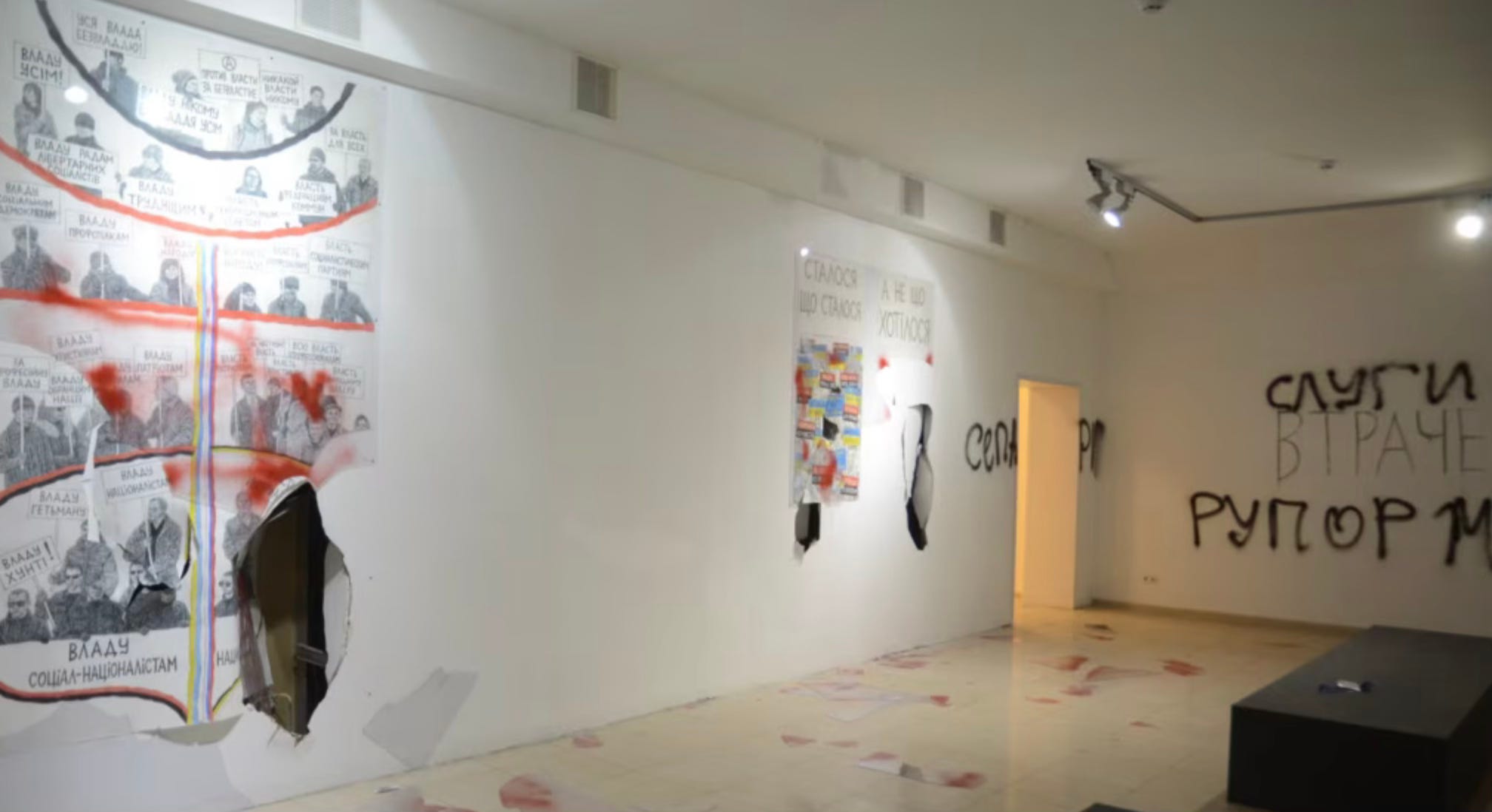 The vandalized exhibition in the Kyiv Center of Visual Culture, 2017.